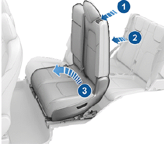 2. Push the second row backrest forward. The seat then releases and pitches upward.